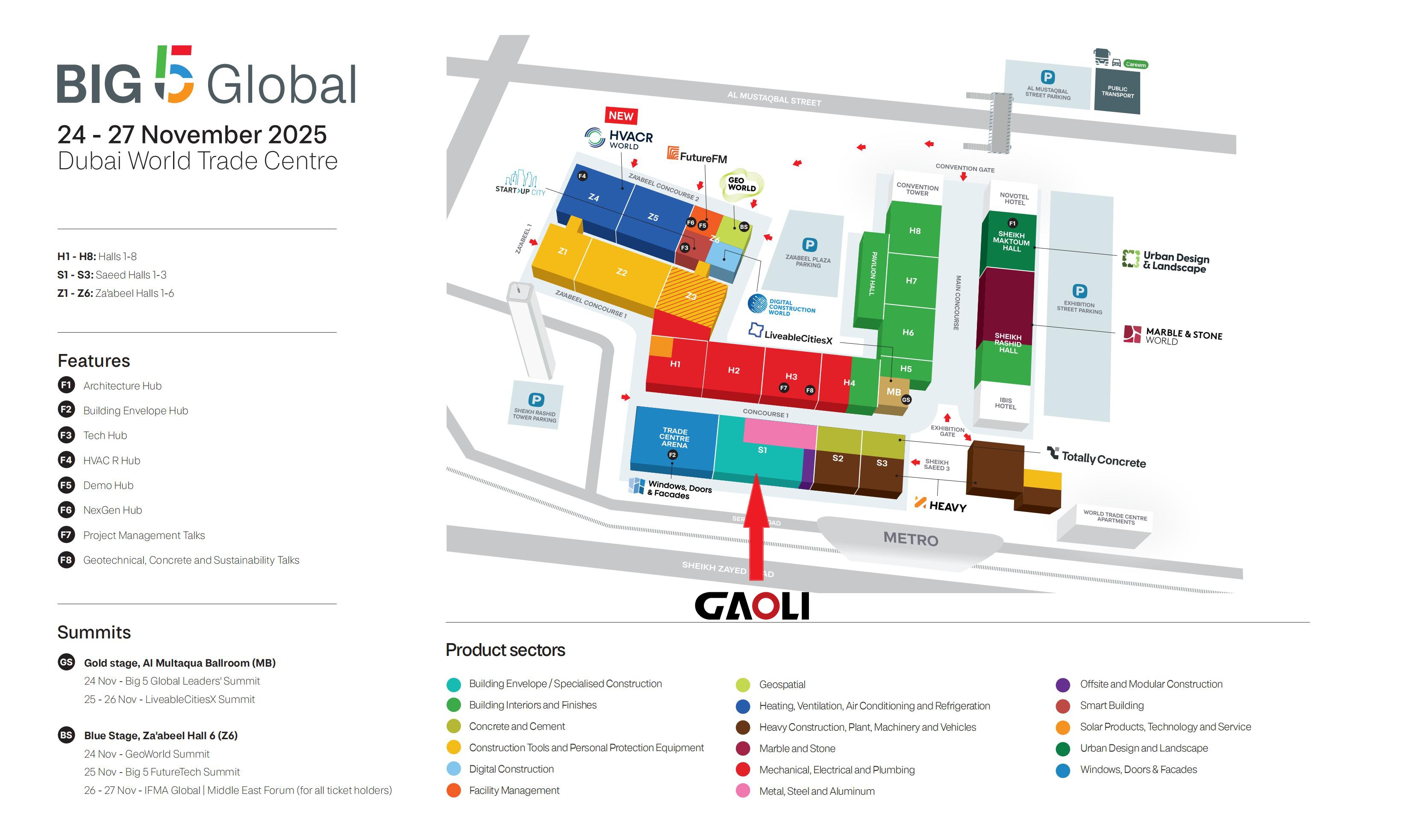 The premier global construction event, Big 5 Global, will be held at the Dubai World Trade Centre from November 24–27, 2025. As one of the largest and most influential construction trade shows in the Middle East and Africa, Big 5 Global has been running for 45 consecutive years, attracting 85,000 professionals from 165 countries worldwide annually. This edition will span all sectors from architectural design and construction to sustainability, providing exhibitors and visitors with a vital platform to showcase innovative technologies, exchange industry expertise, and expand business collaborations. Gaoli will make its debut at this exhibition, introducing new solutions for the Middle East's construction industry and industrial lifting equipment sector.